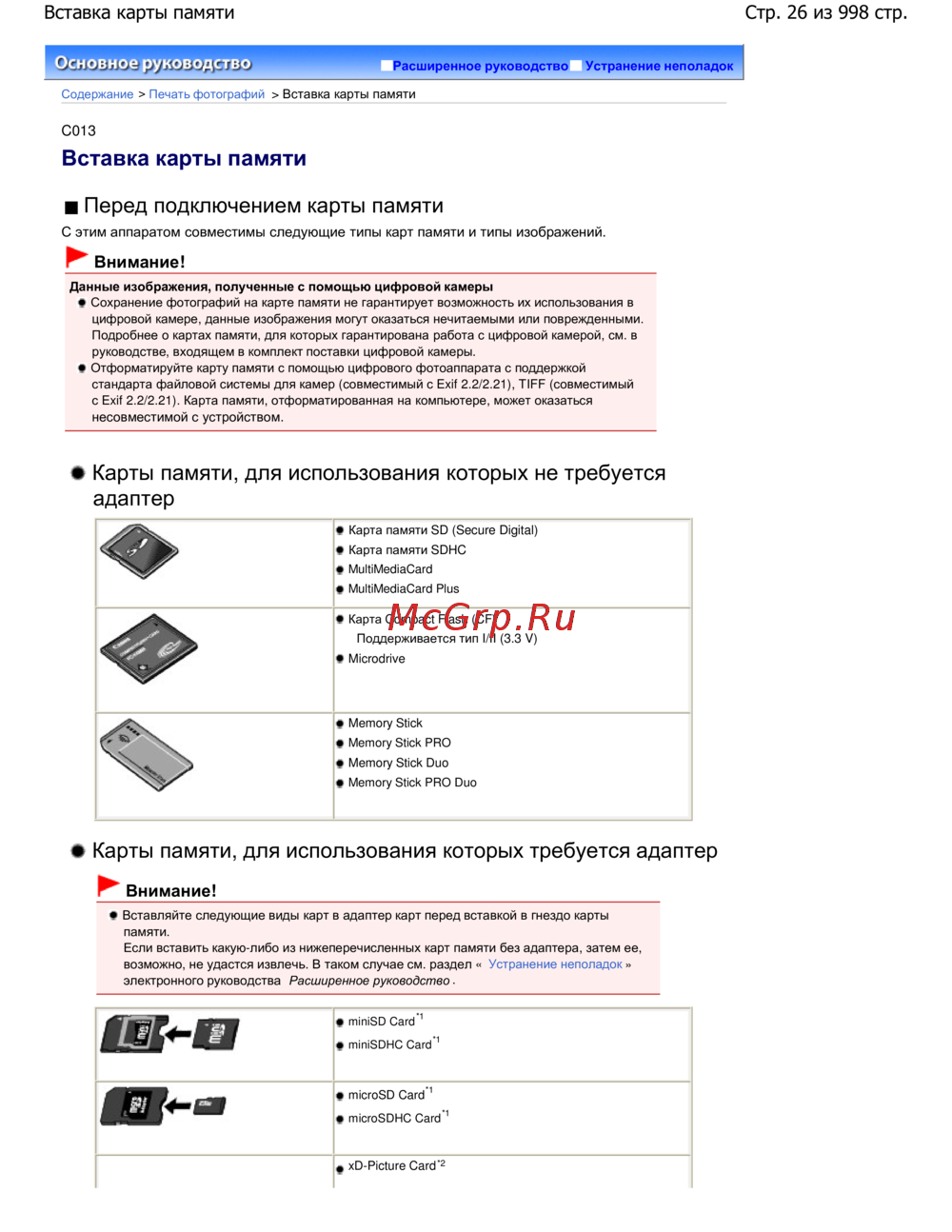 Canon Pixma MG5140 — полное руководство по вставке карт памяти в цифровые устройства [26/998]