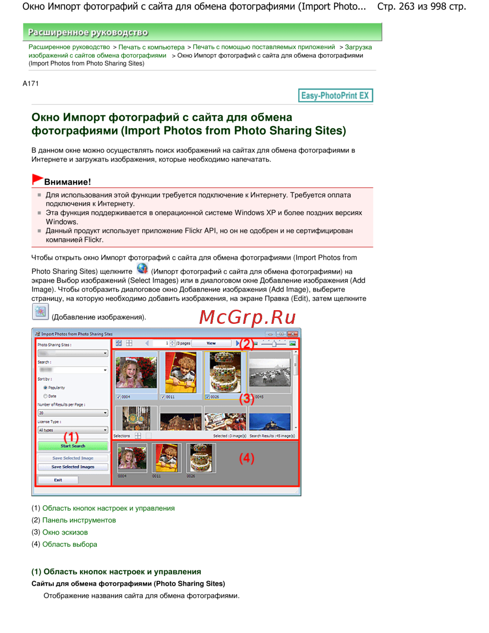 Canon Pixma MG5140 — как загружать изображения с сайтов обмена фотографиями для печати [263/998]