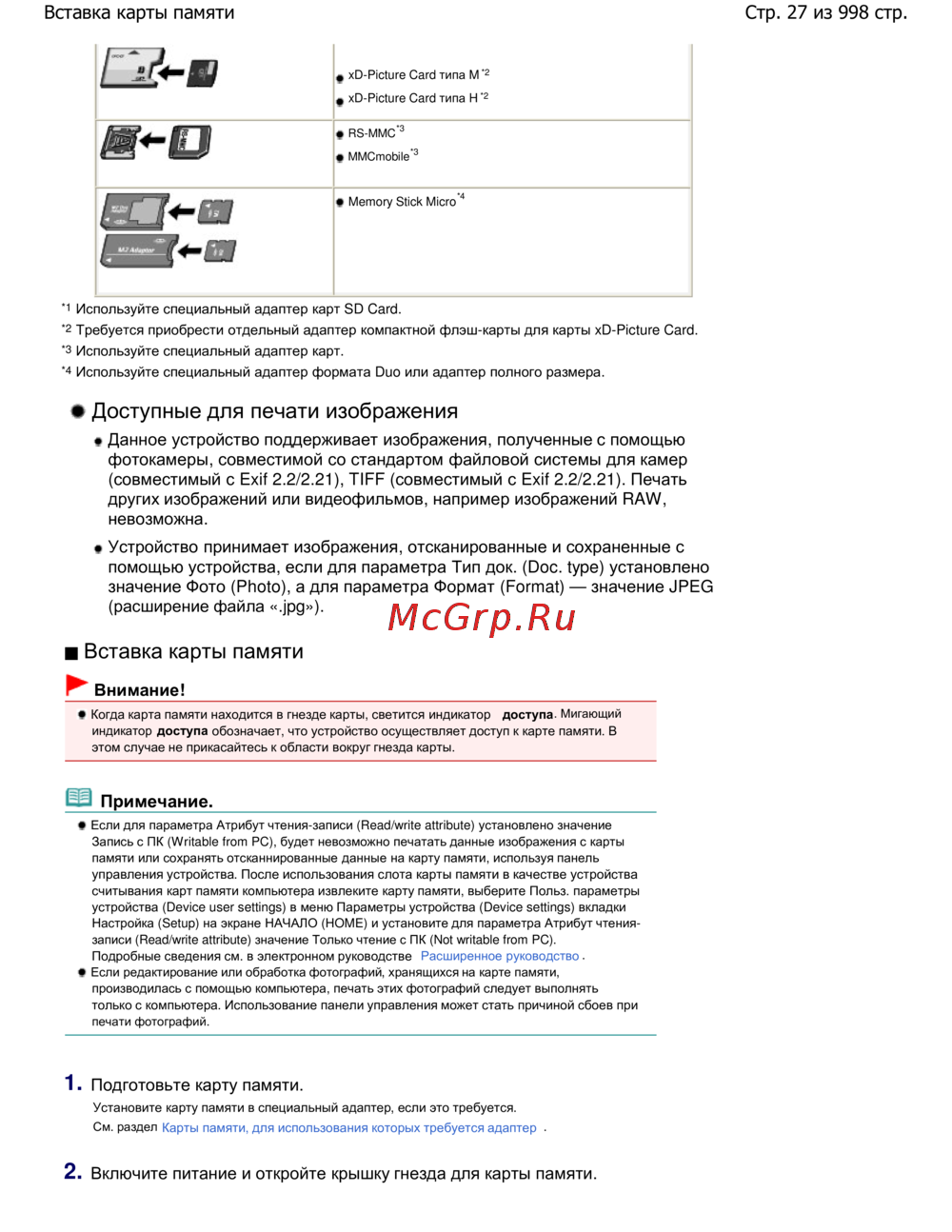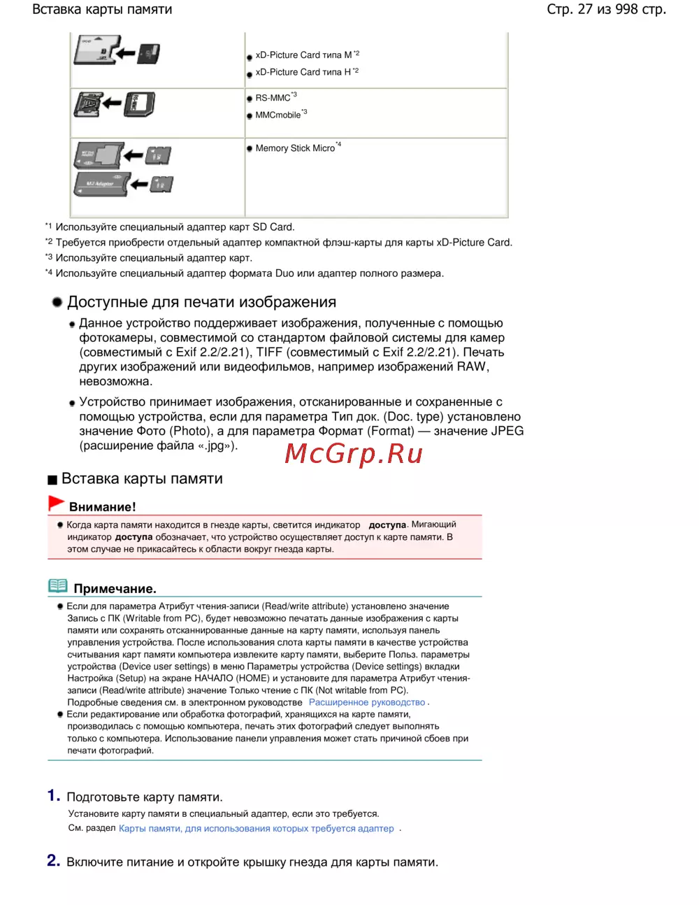 Canon Pixma MG5140 — инструкция по использованию карт памяти для печати изображений [27/998]