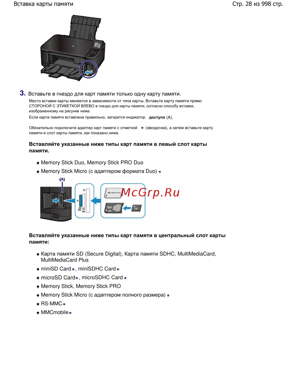 Canon Pixma MG5140 [28/998] Стр 28 из 998 стр вставка карты памяти