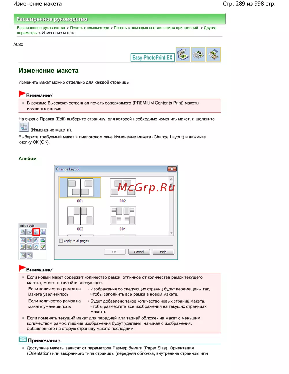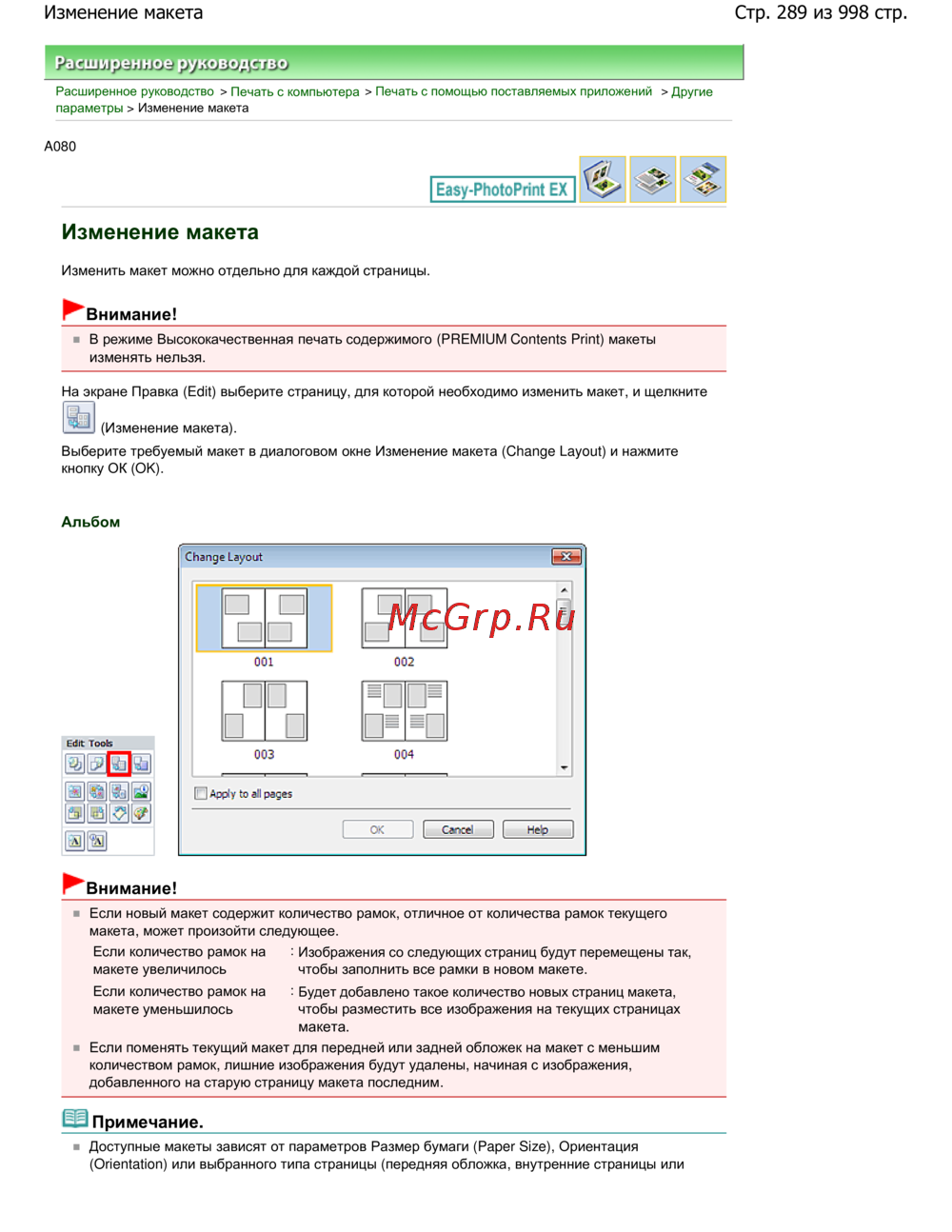 Стр. 289 из 998 стр.Изменение макета