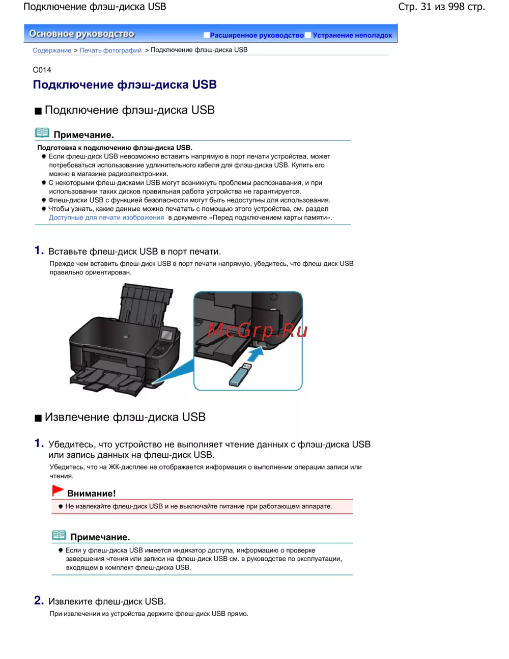 Canon Pixma MG5140 — руководство по подключению и извлечению флэш-диска USB [31/998]