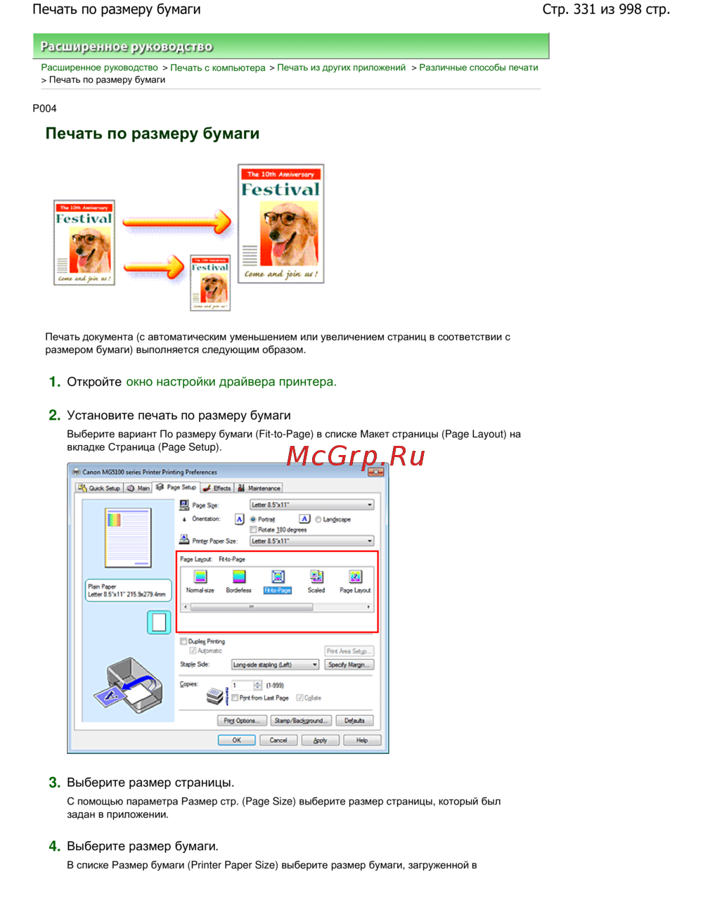 Canon Pixma MG5140 — печать документа по размеру бумаги: пошаговое руководство [331/998]