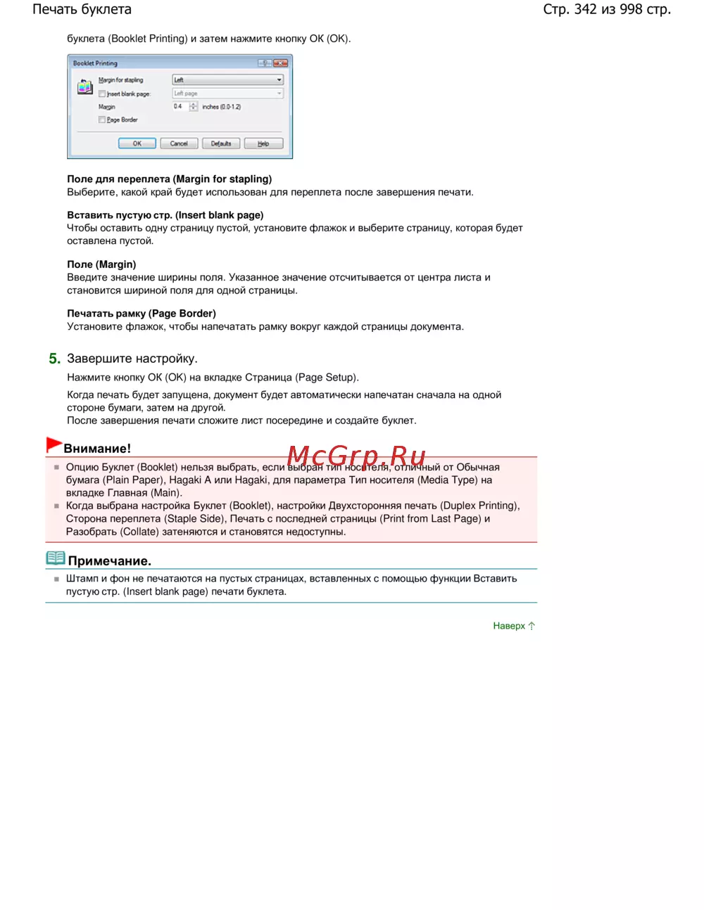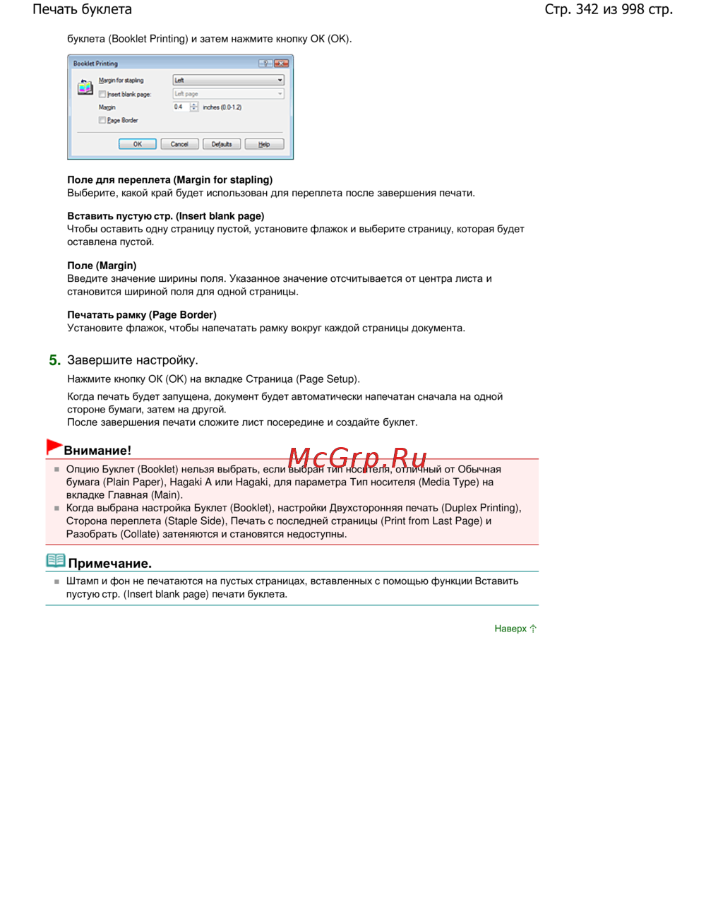 Canon Pixma MG5140 — настройки печати буклетов: поля, перепет, двусторонняя печать [342/998]