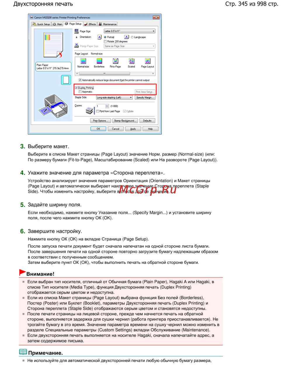 Canon Pixma MG5140 — настройка двухсторонней печати: пошаговая инструкция [345/998]