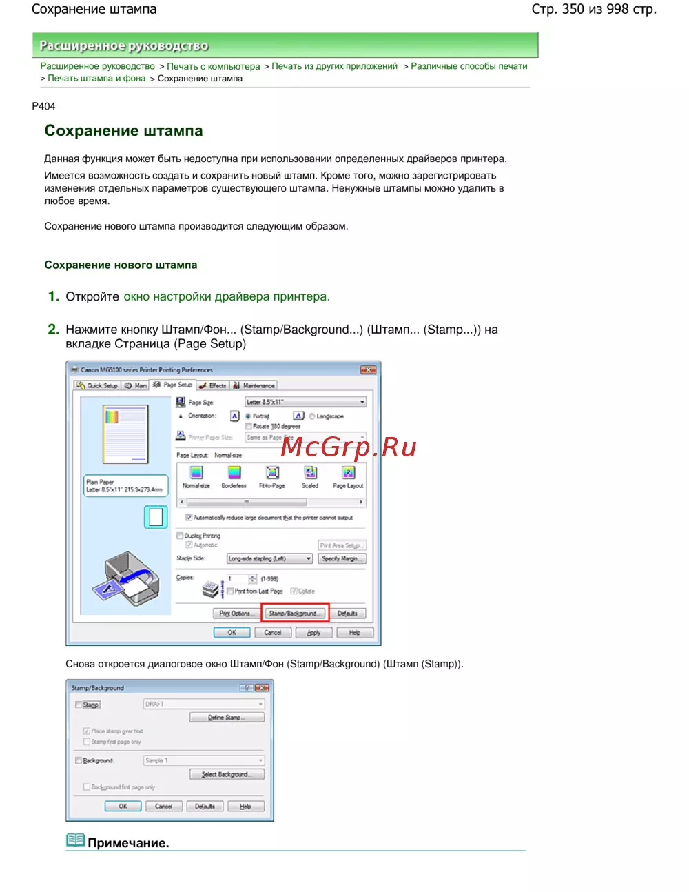 Canon Pixma MG5140 — как сохранить штамп при печати с компьютера [350/998]