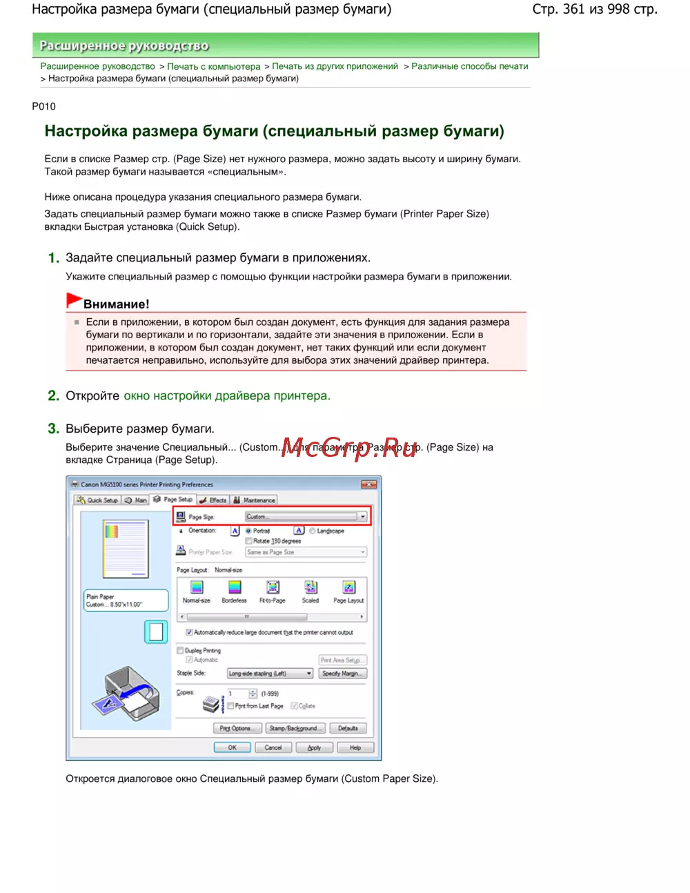 Canon Pixma MG5140 — настройка специального размера бумаги в принтере и приложениях [361/998]
