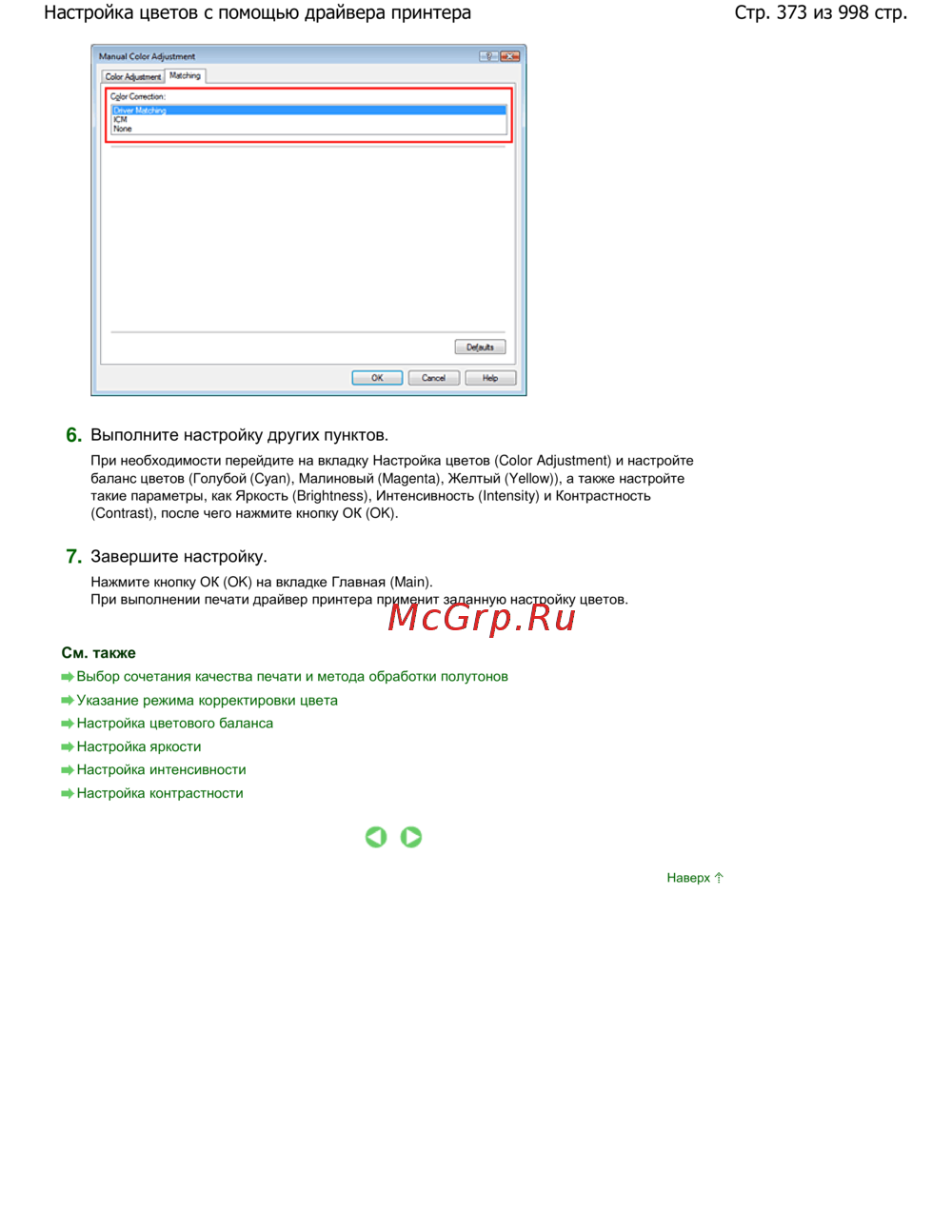 Стр. 373 из 998 стр.Настройка цветов с помощью драйвера принтера