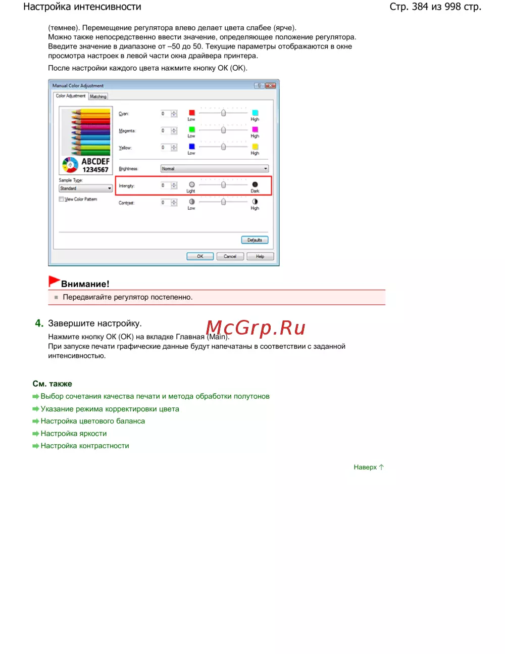 Canon Pixma MG5140 — настройка интенсивности цветов в принтере — инструкция [384/998]