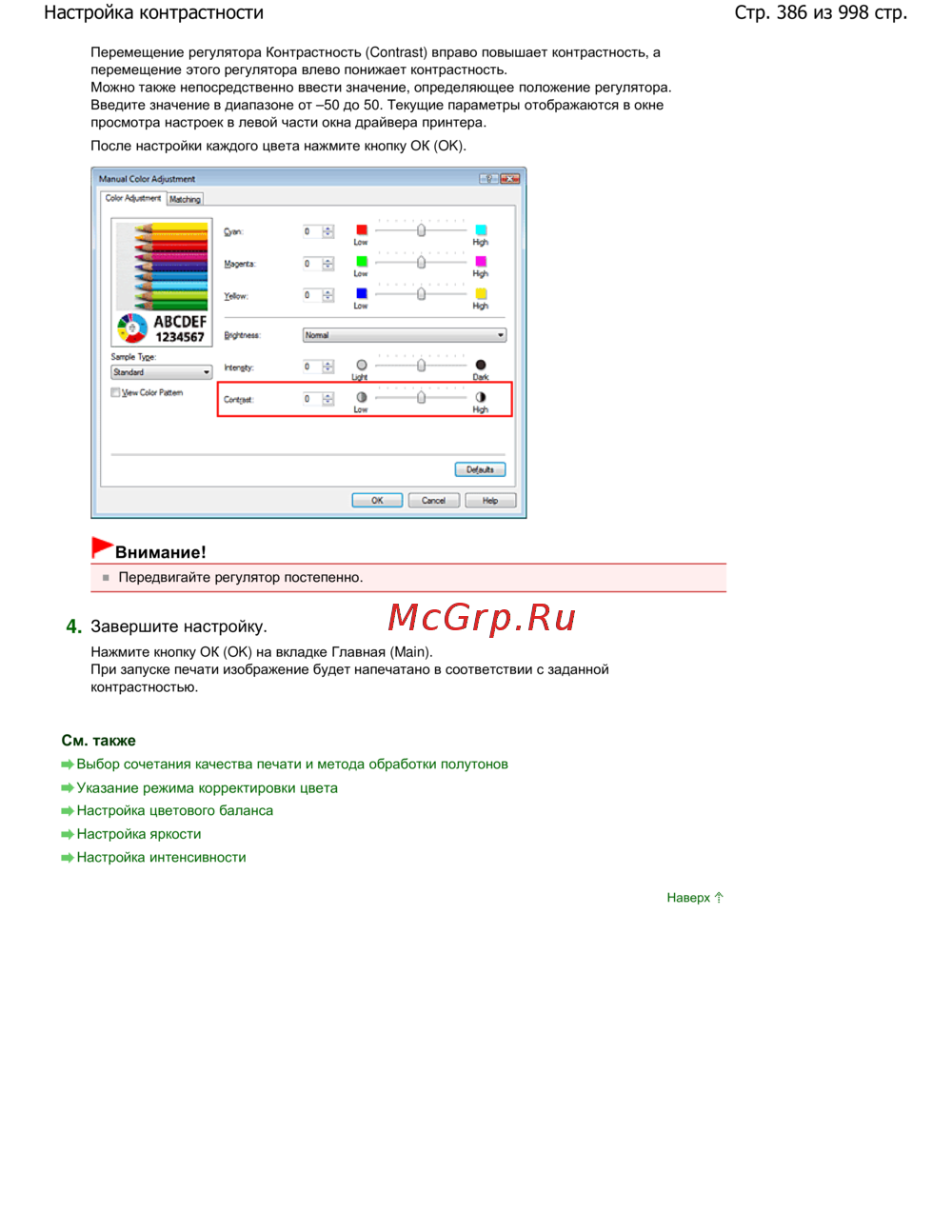 Canon Pixma MG5140 — настройка контрастности в драйвере принтера: инструкция по регулятору и вводу значений [386/998]