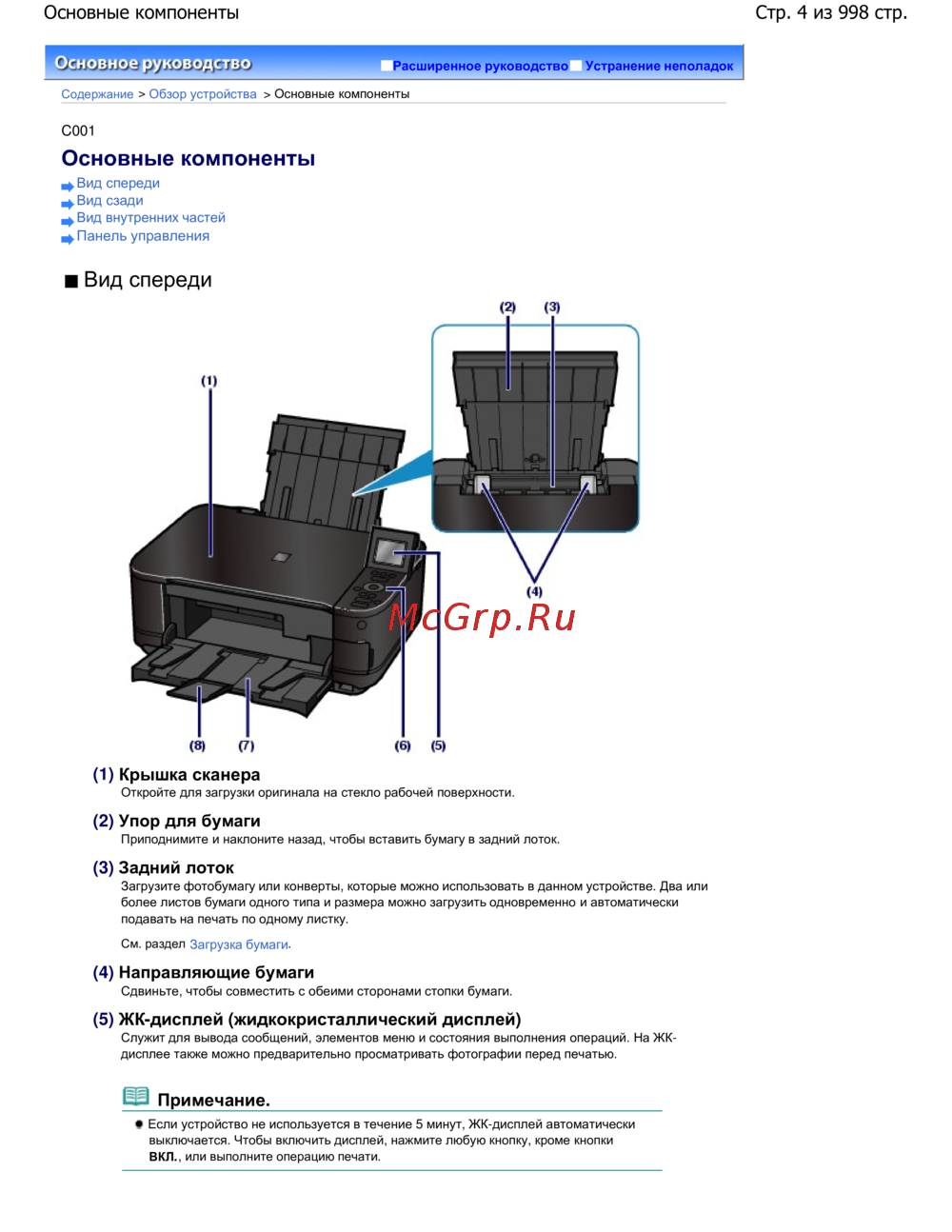 - Стр 1 из 998 стр canon mg5100 series электронное руководство p.1