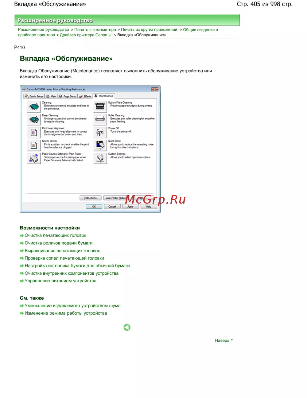 Canon Pixma MG5140 — полное руководство по обслуживанию драйвера принтера [405/998]
