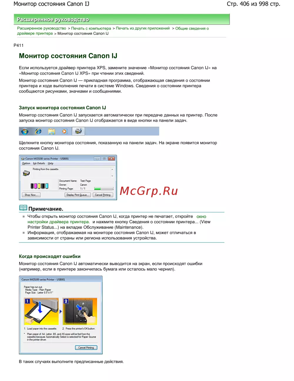 Canon Pixma MG5140 — монитор состояния принтера: инструкция и управление [406/998]