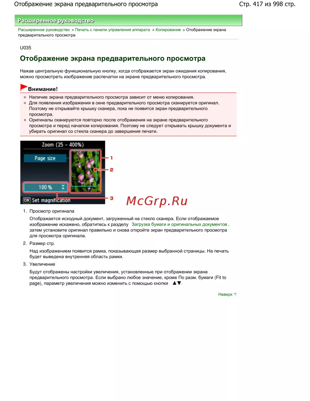 Стр. 417 из 998 стр.Отображение экрана предварительного просмотра