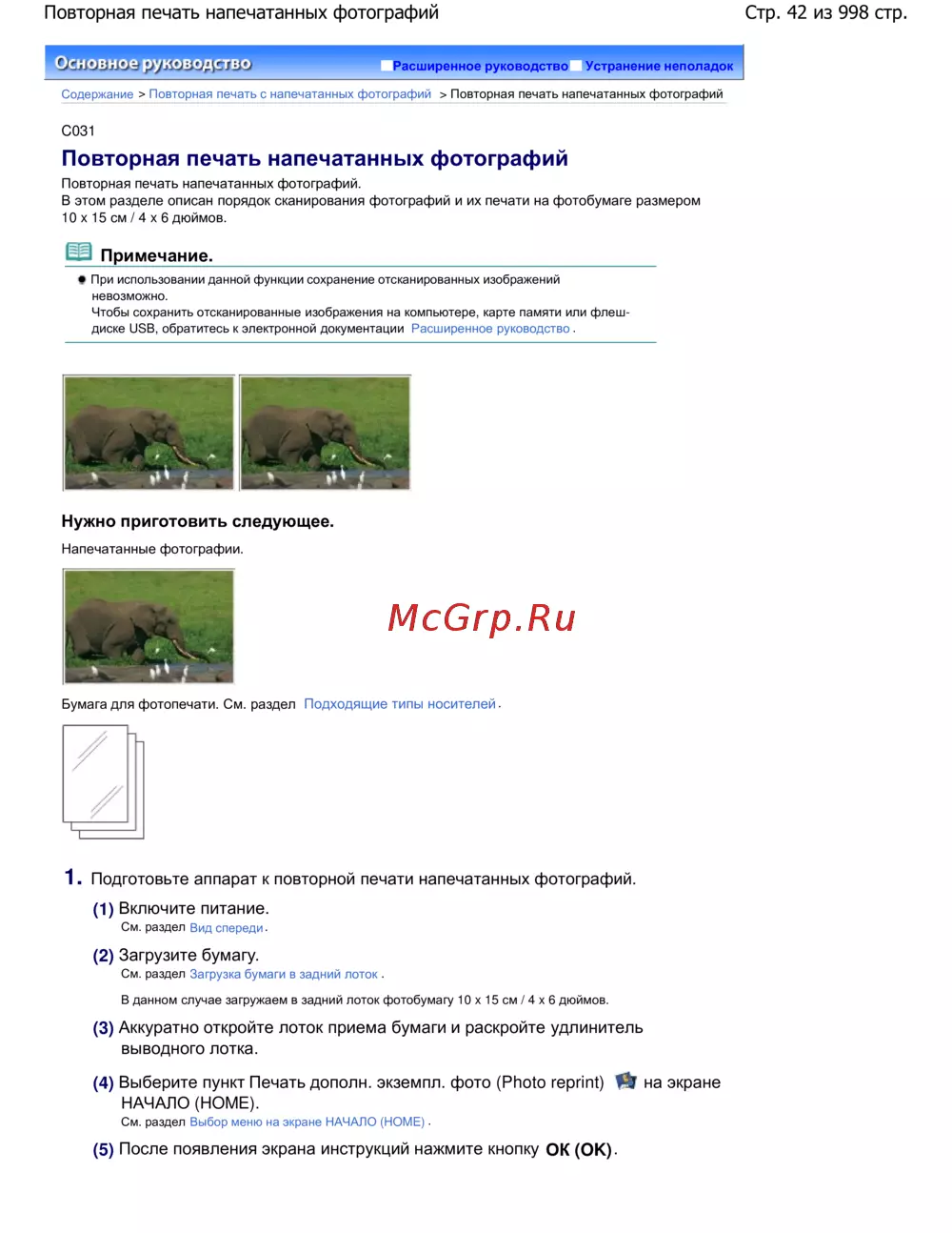 Стр. 42 из 998 стр.Повторная печать напечатанных фотографий