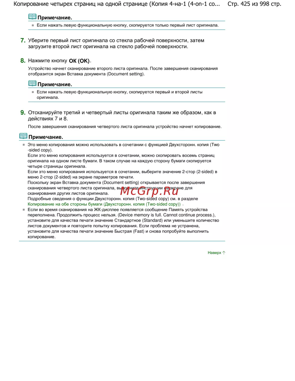 Стр. 425 из 998 стр.Копирование четырех страниц на одной странице (Копия 4-на-1 (4-on-1 co...