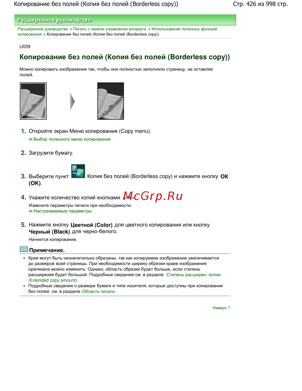 Стр. 426 из 998 стр.Копирование без полей (Копия без полей (Borderless copy))