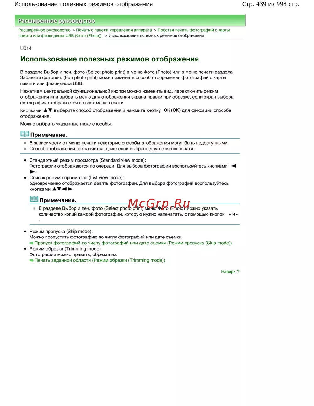 Canon Pixma MG5140 — режимы просмотра фотографий для печати с карты памяти и USB-диска [439/998]