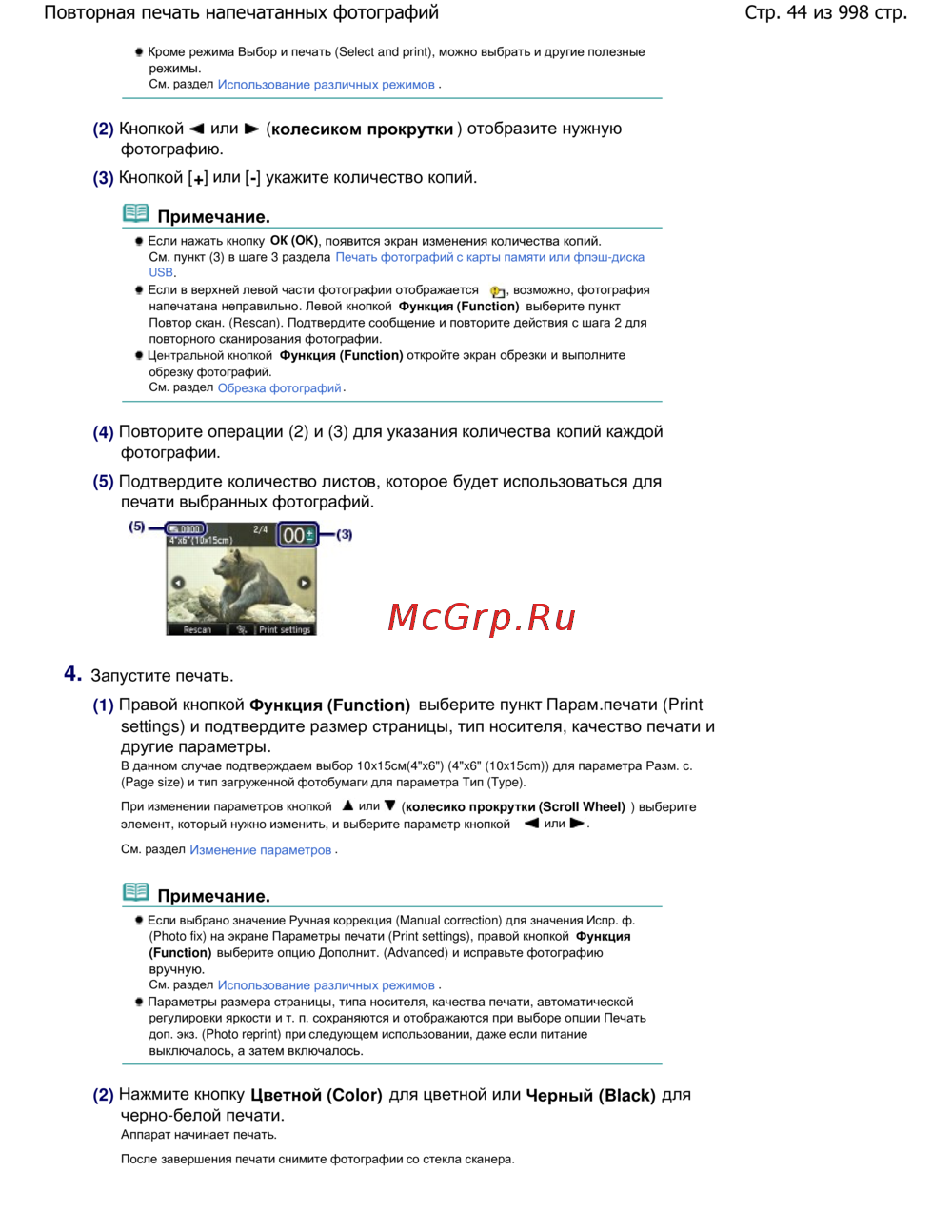 Стр. 44 из 998 стр.Повторная печать напечатанных фотографий