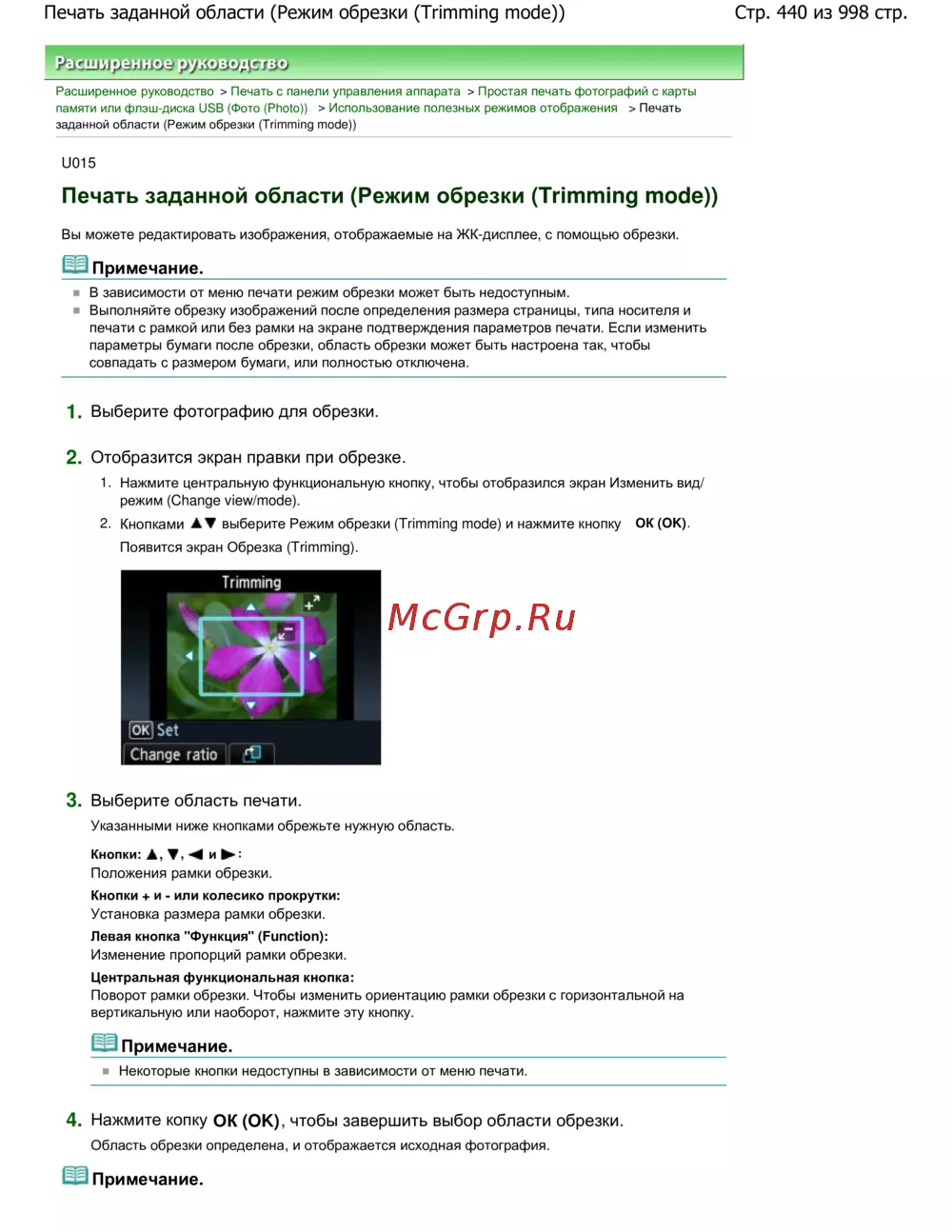 Canon Pixma MG5140 — обрезка изображений при печати: Режим обрезки (Trimming mode) [440/998]