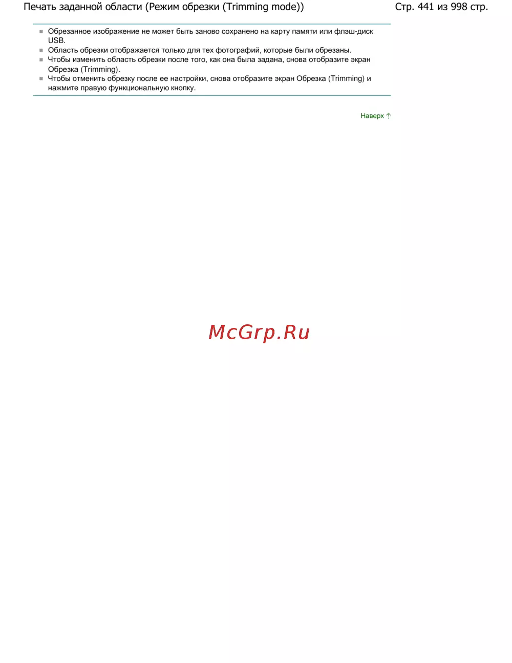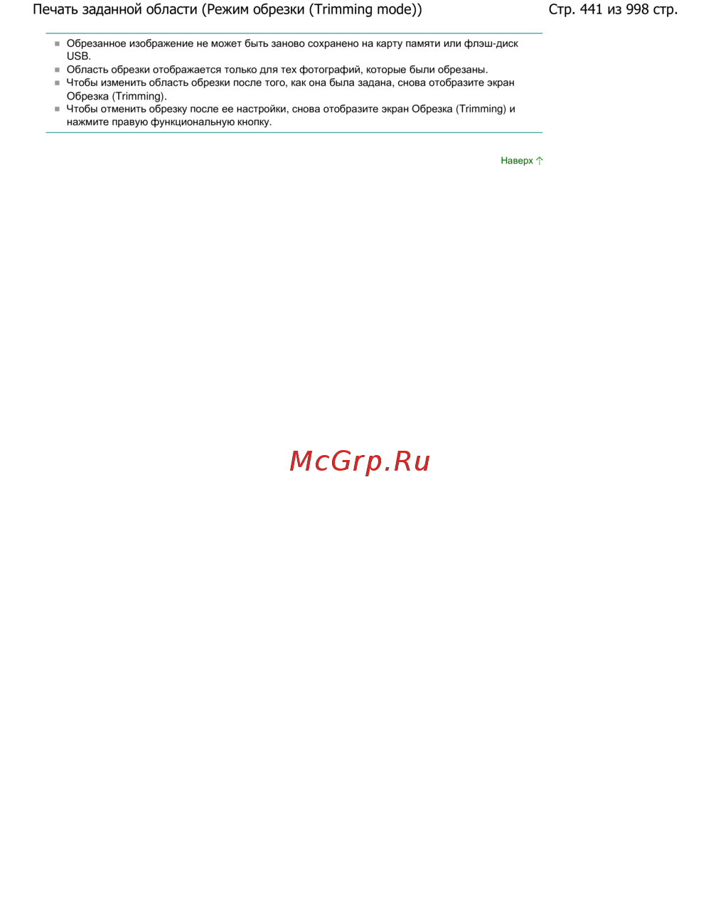 Стр. 441 из 998 стр.Печать заданной области (Режим обрезки (Trimming mode))