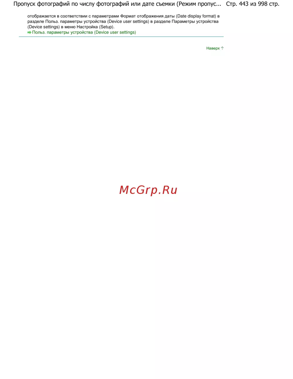 Стр. 443 из 998 стр.Пропуск фотографий по числу фотографий или дате съемки (Режим пропус...