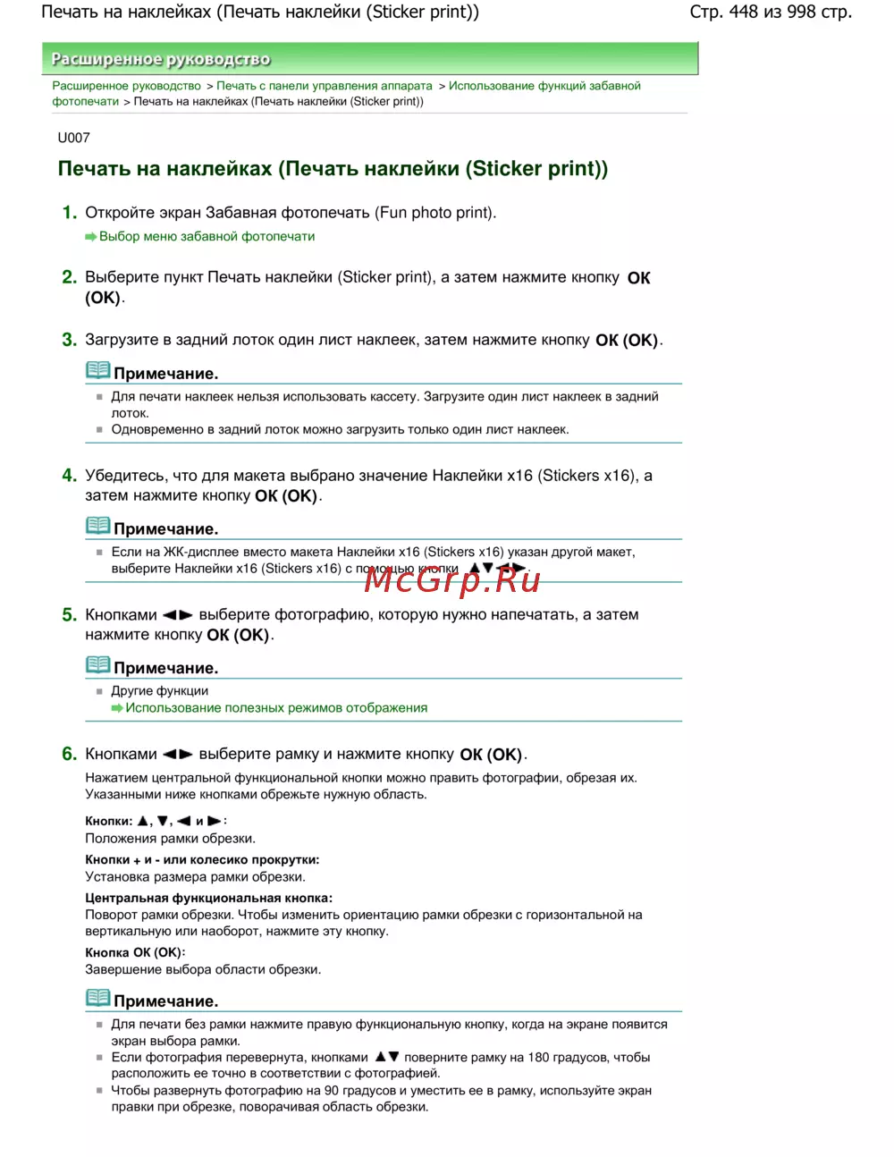 Canon Pixma MG5140 — печать на наклейках: подробное руководство и инструкция по обрезке фото [448/998]