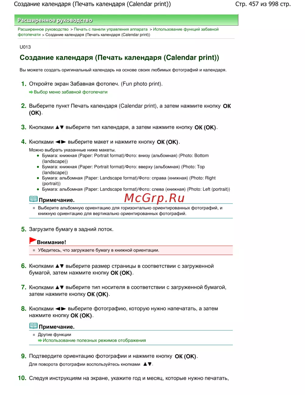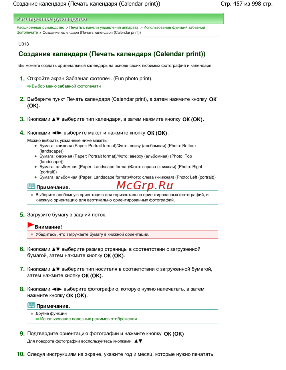 Стр. 457 из 998 стр.Создание календаря (Печать календаря (Calendar print))