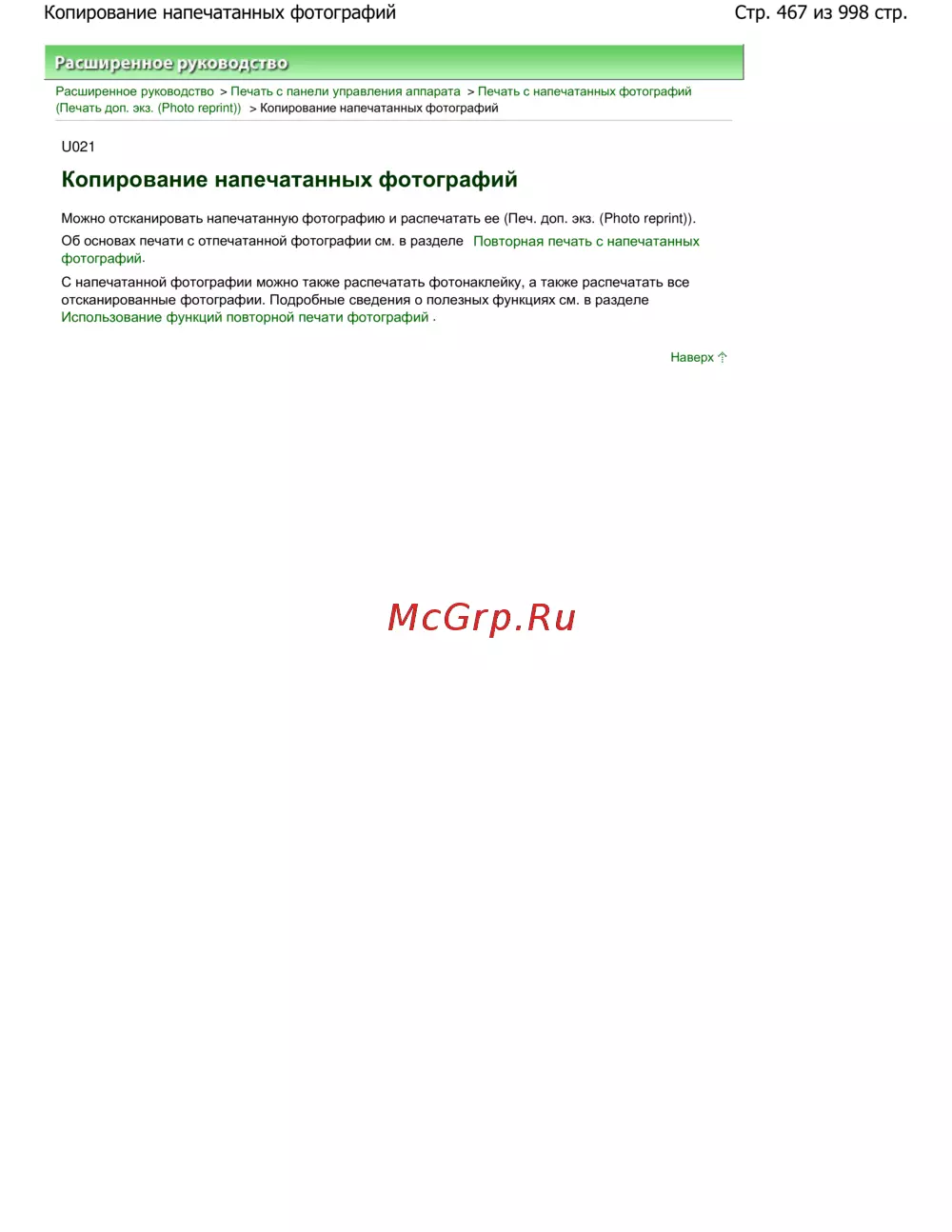 Стр. 467 из 998 стр.Копирование напечатанных фотографий