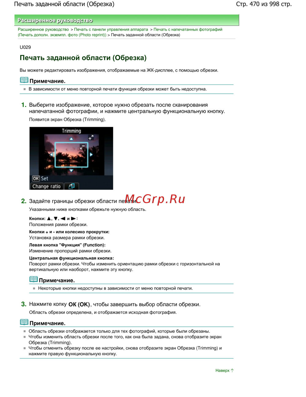 Стр. 470 из 998 стр.Печать заданной области (Обрезка)