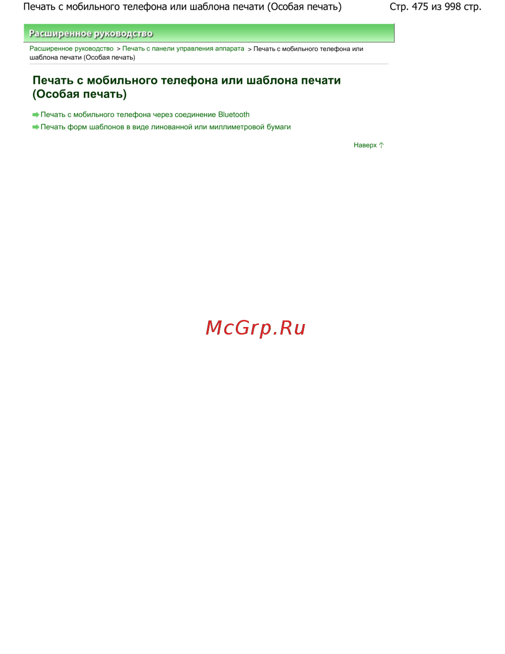Стр. 475 из 998 стр.Печать с мобильного телефона или шаблона печати (Особая печать)
