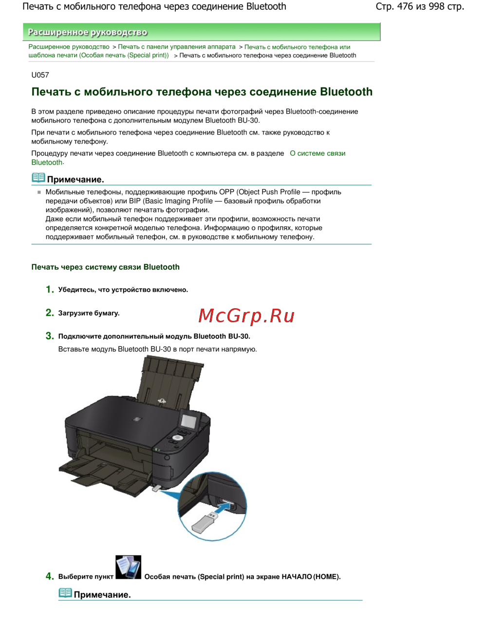 Стр. 476 из 998 стр.Печать с мобильного телефона через соединение Bluetooth