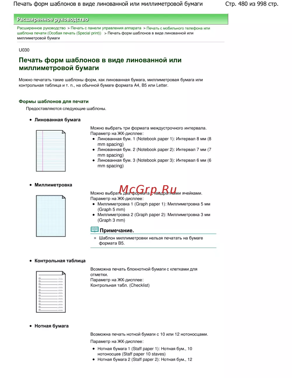 Стр. 480 из 998 стр.Печать форм шаблонов в виде линованной или миллиметровой бумаги