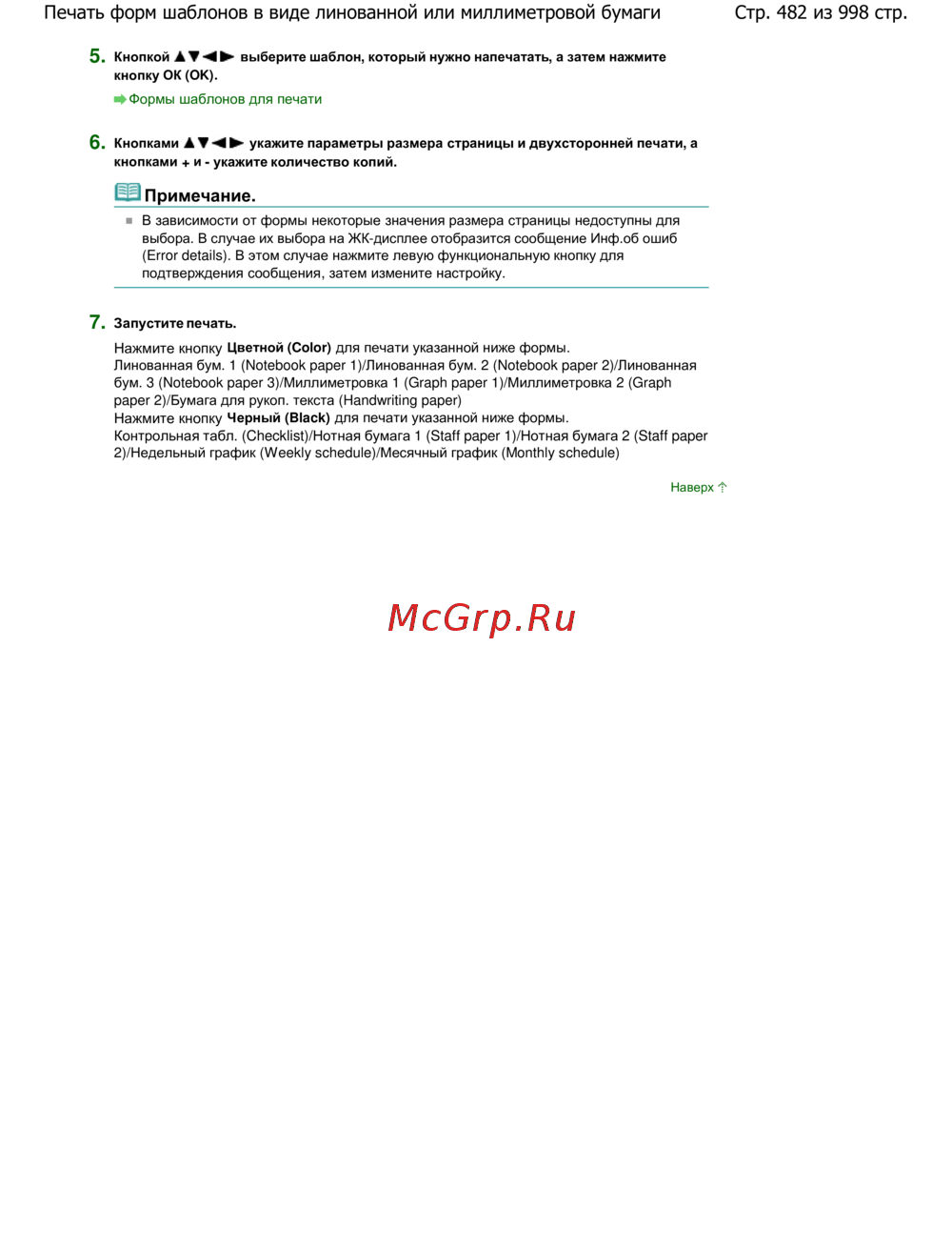 Стр. 482 из 998 стр.Печать форм шаблонов в виде линованной или миллиметровой бумаги