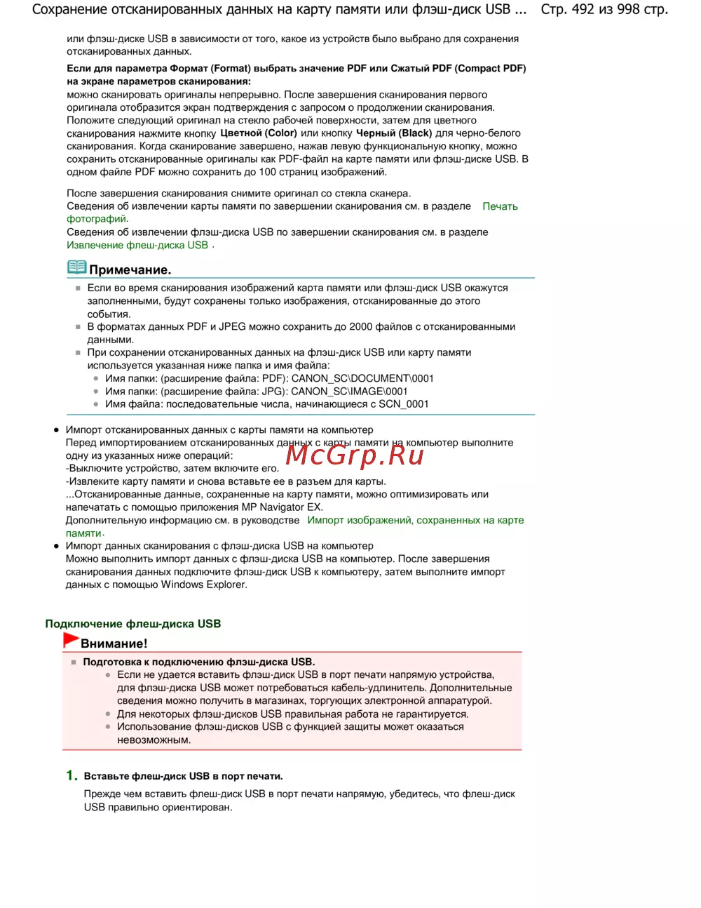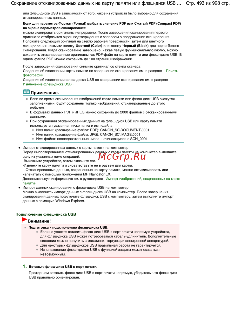 Стр. 492 из 998 стр.Сохранение отсканированных данных на карту памяти или флэш-диск USB ...