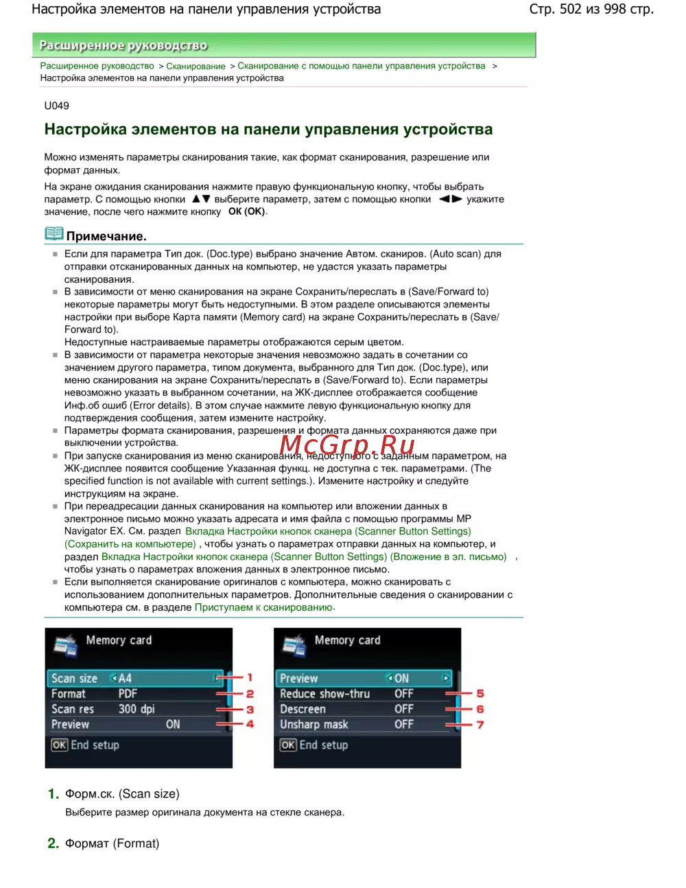 Canon Pixma MG5140 — настройка параметров сканирования на панели управления устройства [502/998]