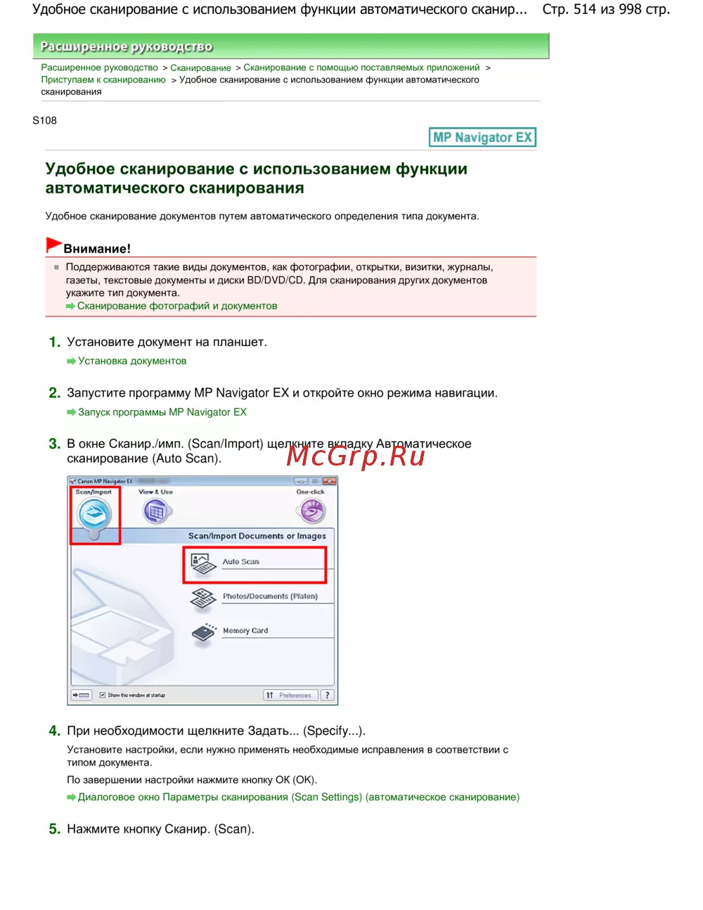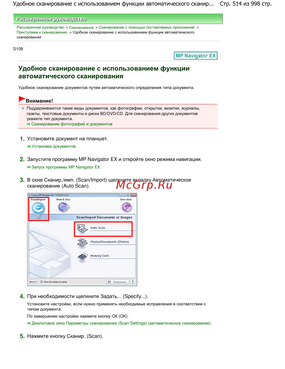 Стр. 514 из 998 стр.Удобное сканирование с использованием функции автоматического сканир...