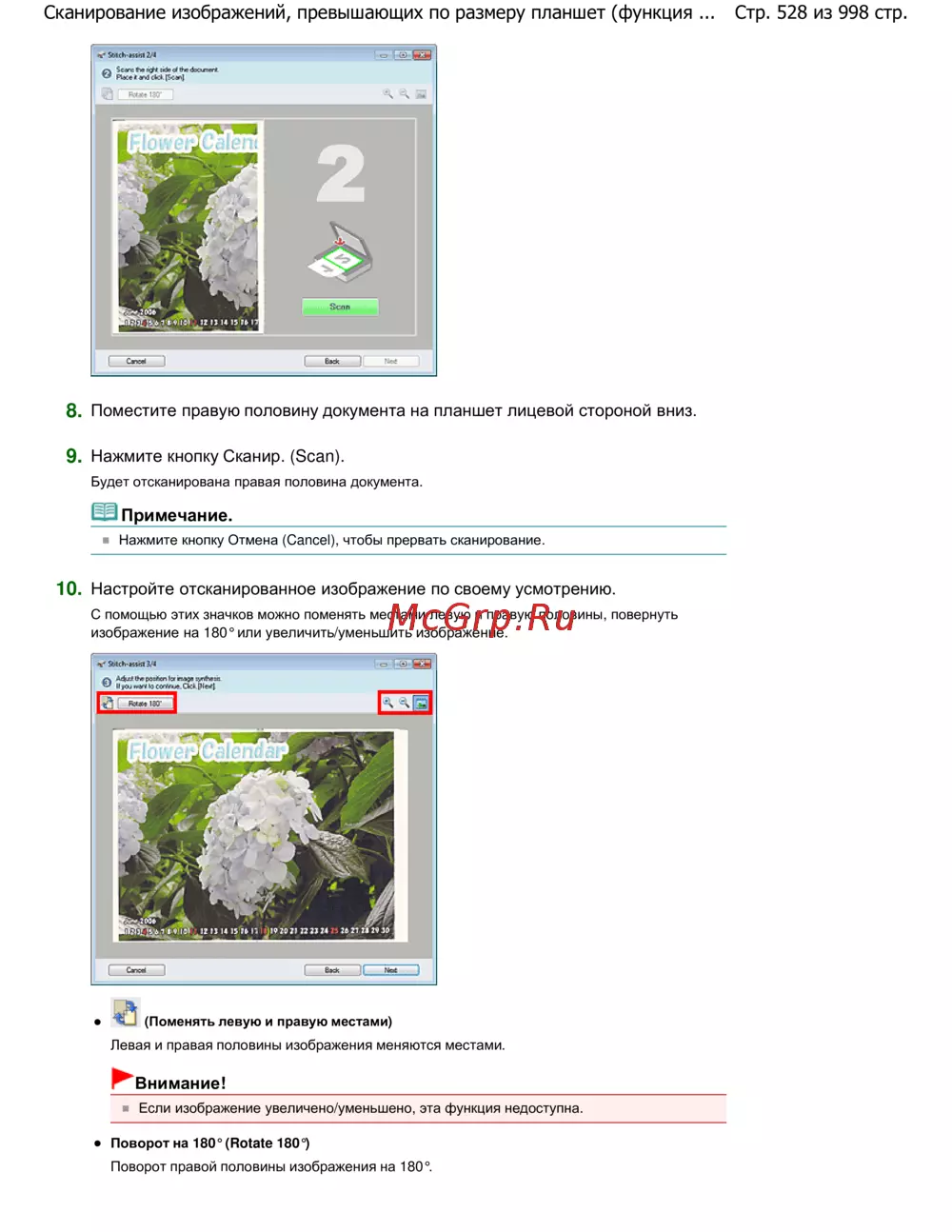 Стр. 528 из 998 стр.Сканирование изображений, превышающих по размеру планшет (функция ...