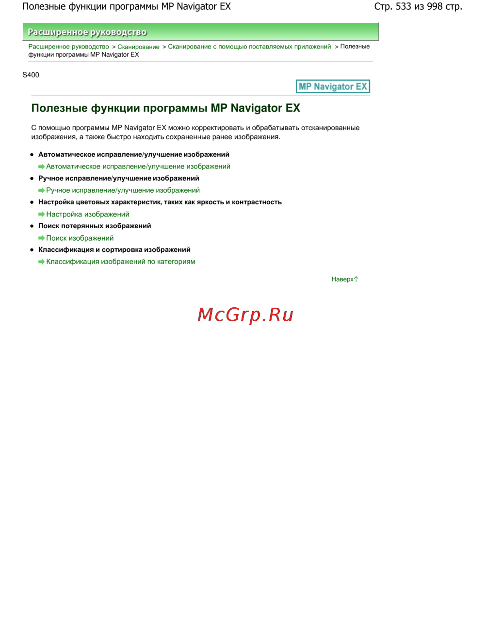 Стр. 533 из 998 стр.Полезные функции программы MP Navigator EX