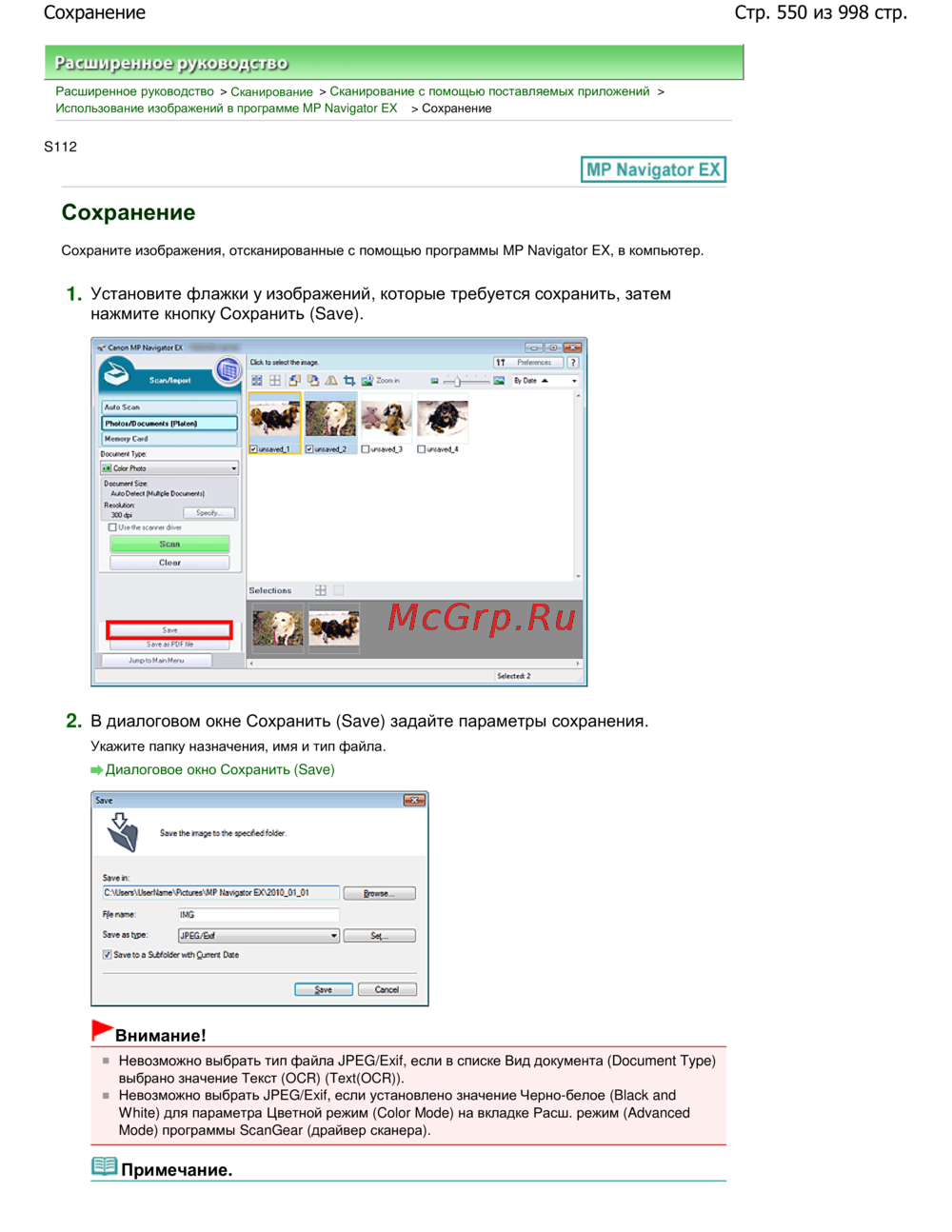 Canon Pixma MG5140 — как сохранить изображения, отсканированные с помощью MP Navigator EX [550/998]