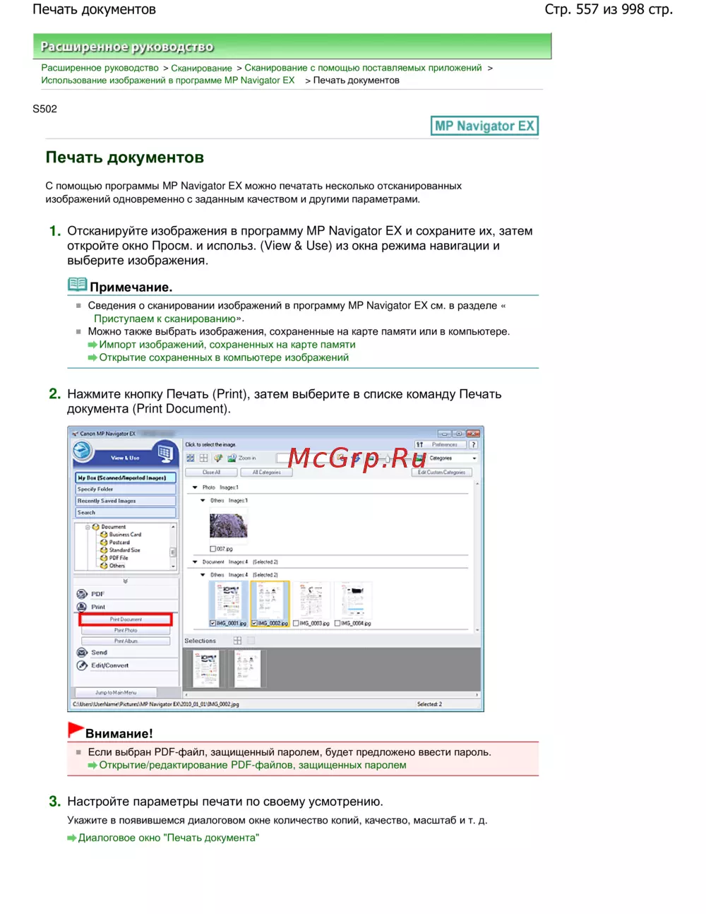 С помощью программы MP Navigator EX можно печатать несколько отсканированных