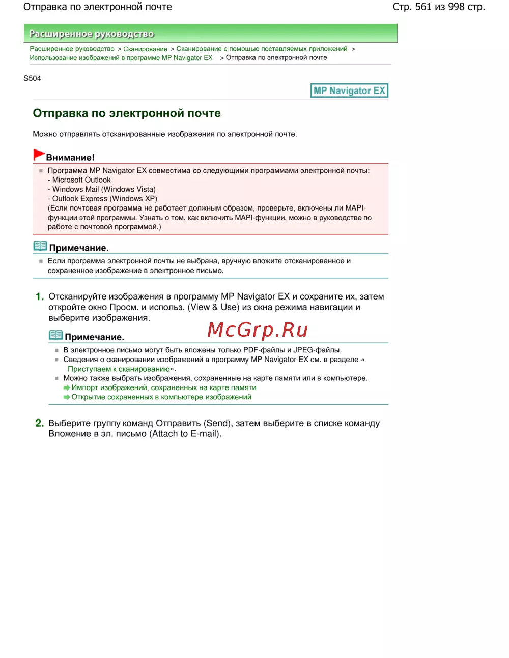 Canon Pixma MG5140 — как отправлять сканированные изображения по электронной почте с помощью MP Navigator EX [561/998]