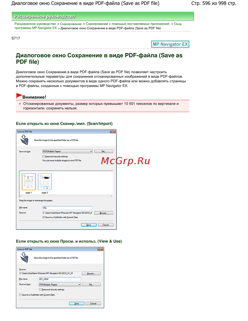 Canon Pixma MG5140 — настройка параметров PDF при сохранении сканированных документов MP Navigator EX [596/998]