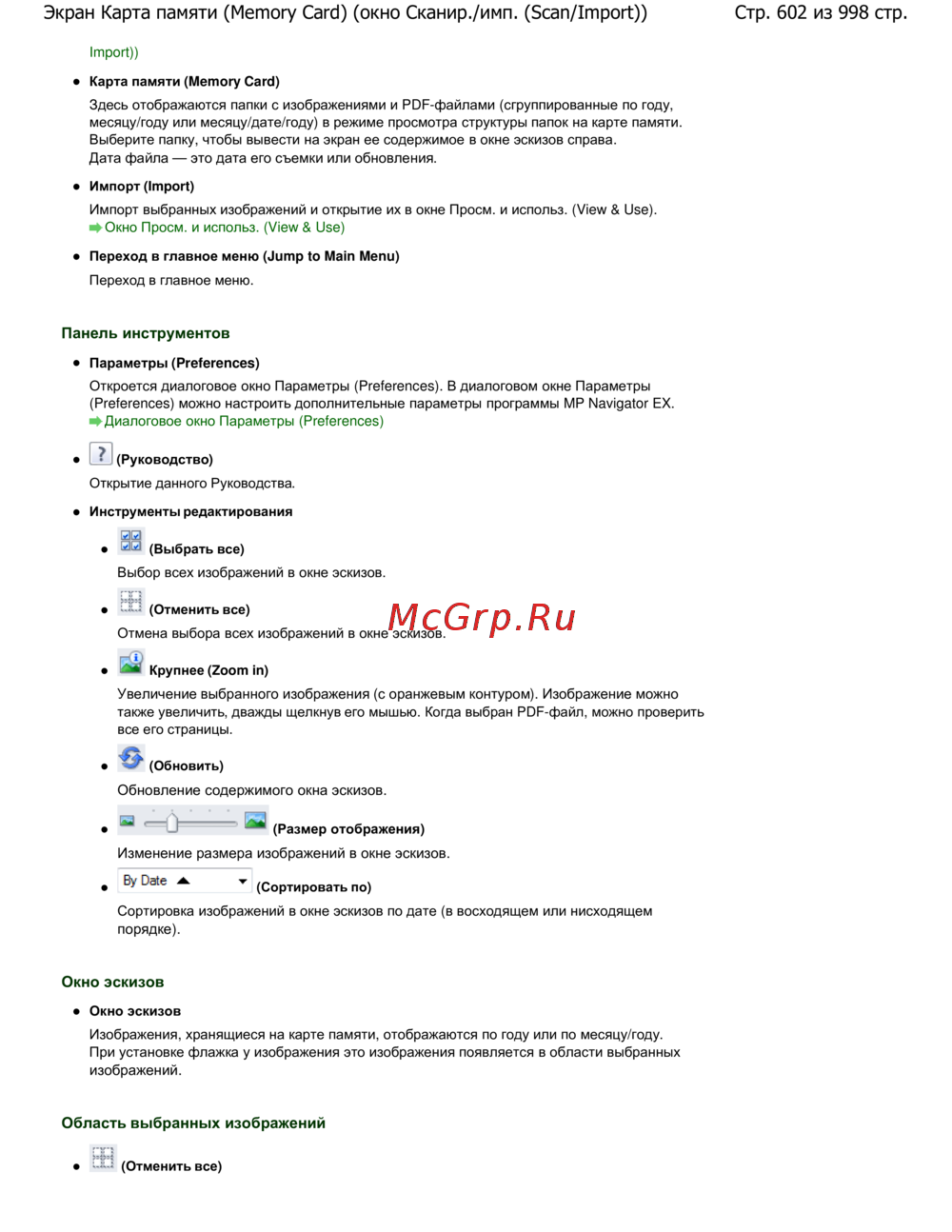 Стр. 602 из 998 стр.Экран Карта памяти (Memory Card) (окно Сканир./имп. (Scan/Import))