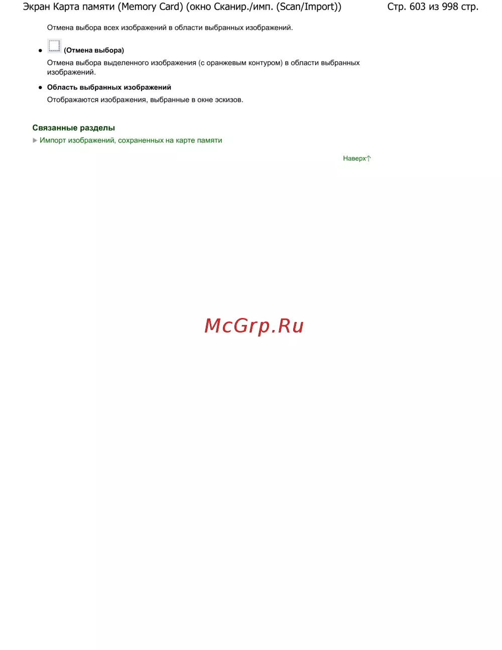 Стр. 603 из 998 стр.Экран Карта памяти (Memory Card) (окно Сканир./имп. (Scan/Import))