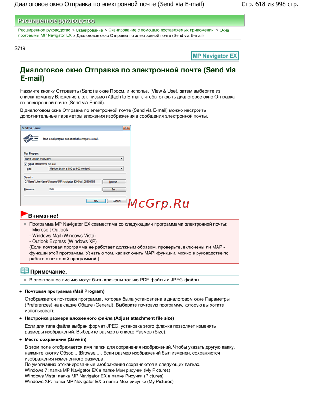 Canon Pixma MG5140 — руководство по отправке сканированных изображений по электронной почте в MP Navigator EX [618/998]