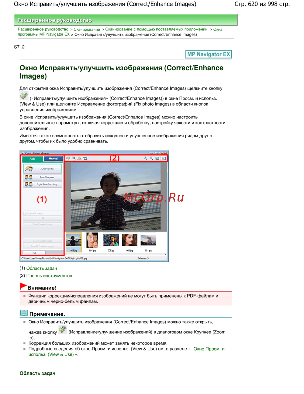Стр. 620 из 998 стр.Окно Исправить/улучшить изображения (Correct/Enhance Images)