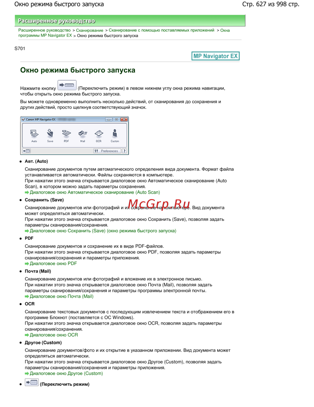 Canon Pixma MG5140 — режим быстрого запуска MP Navigator EX: функции и инструкция по использованию [627/998]
