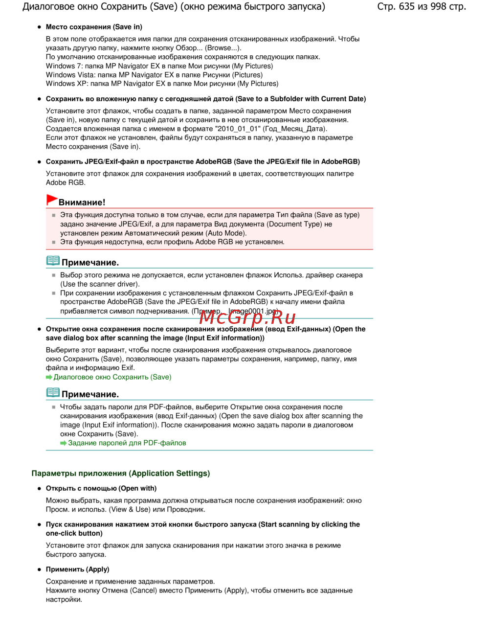 Canon Pixma MG5140 — настройки сохранения отсканированных изображений и параметров [635/998]