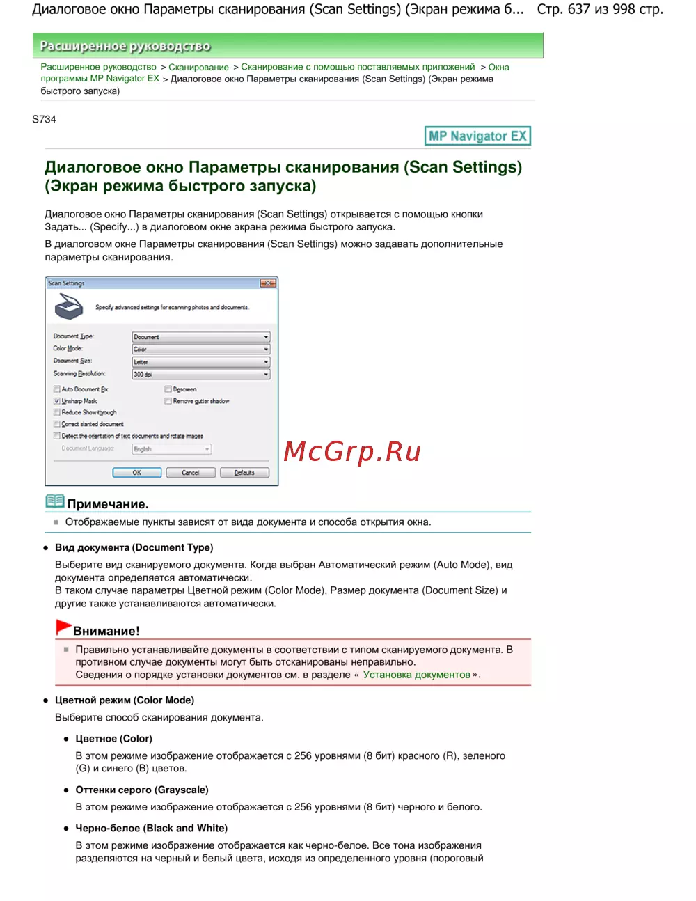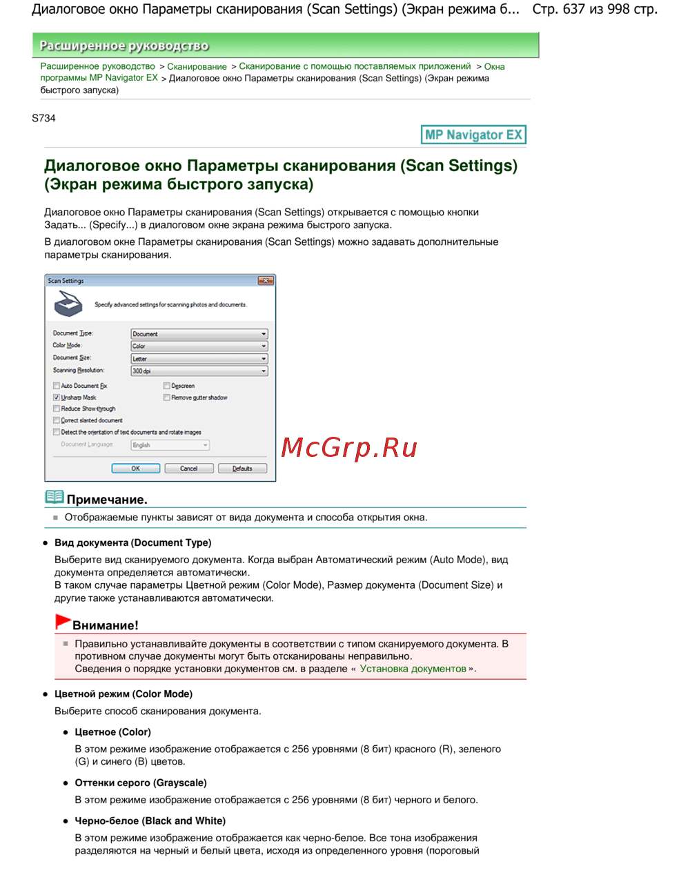 Canon Pixma MG5140 — полное руководство по параметрам сканирования документов [637/998]